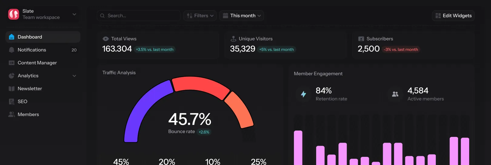 Track visitor behavior, engagement trends and performance